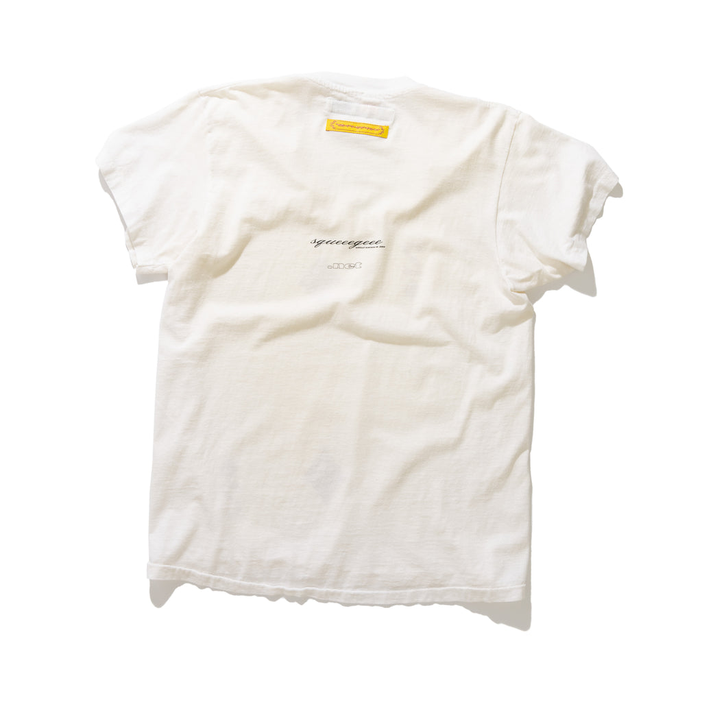 squeeegeee presents the squeee neck. The v-neck t-shirt. An often overlooked and underestimated garment. The squeee neck conveys a sense of buoyancy and leisure. All shirts have a past life: yellowing, stains, warping, cracking and fraying simply make the product richer. The style is so casual it seems enlightened. Carefully careless. Hand-printed in Los Angeles with feelings, mistakes and emotions. Each one is unique.