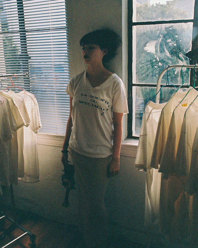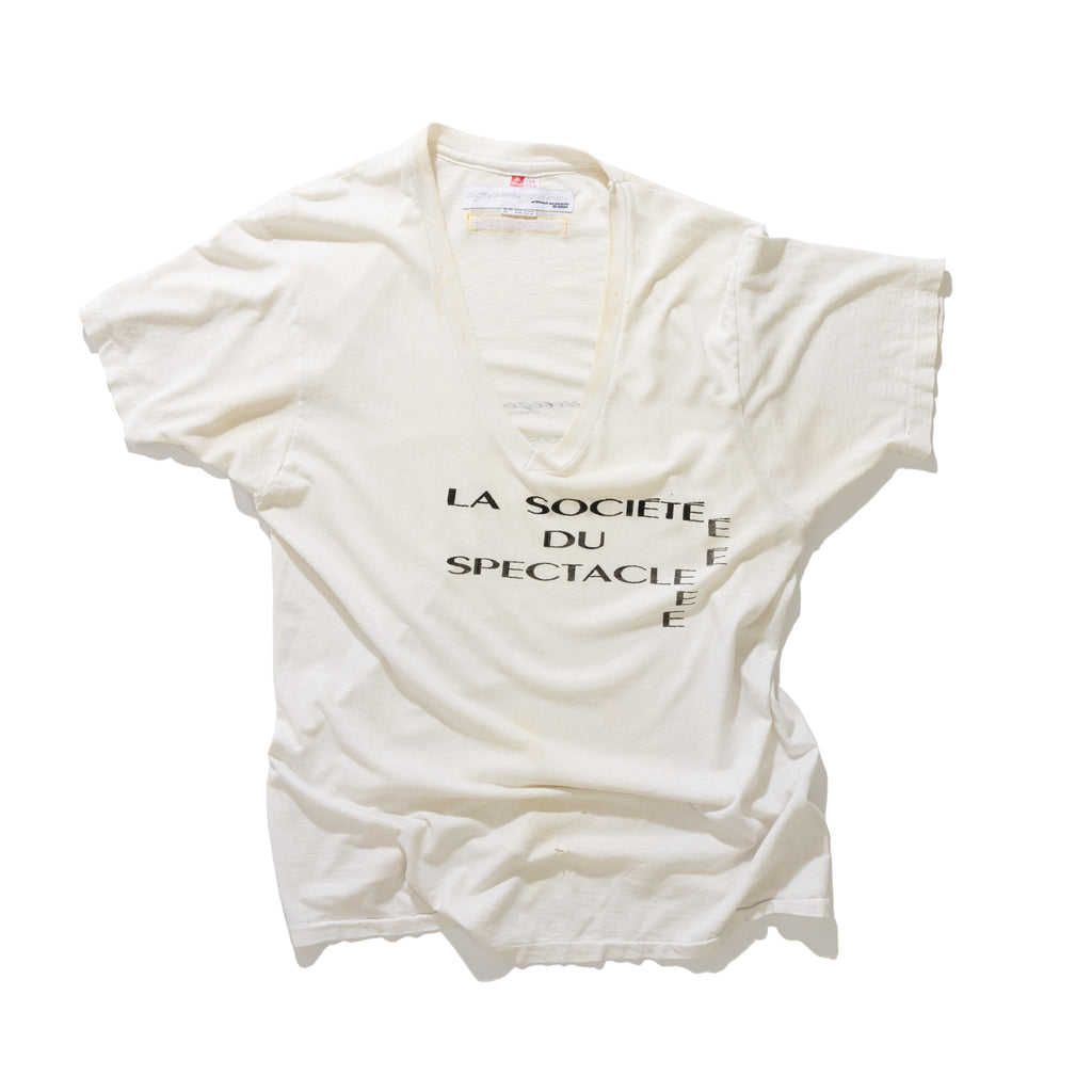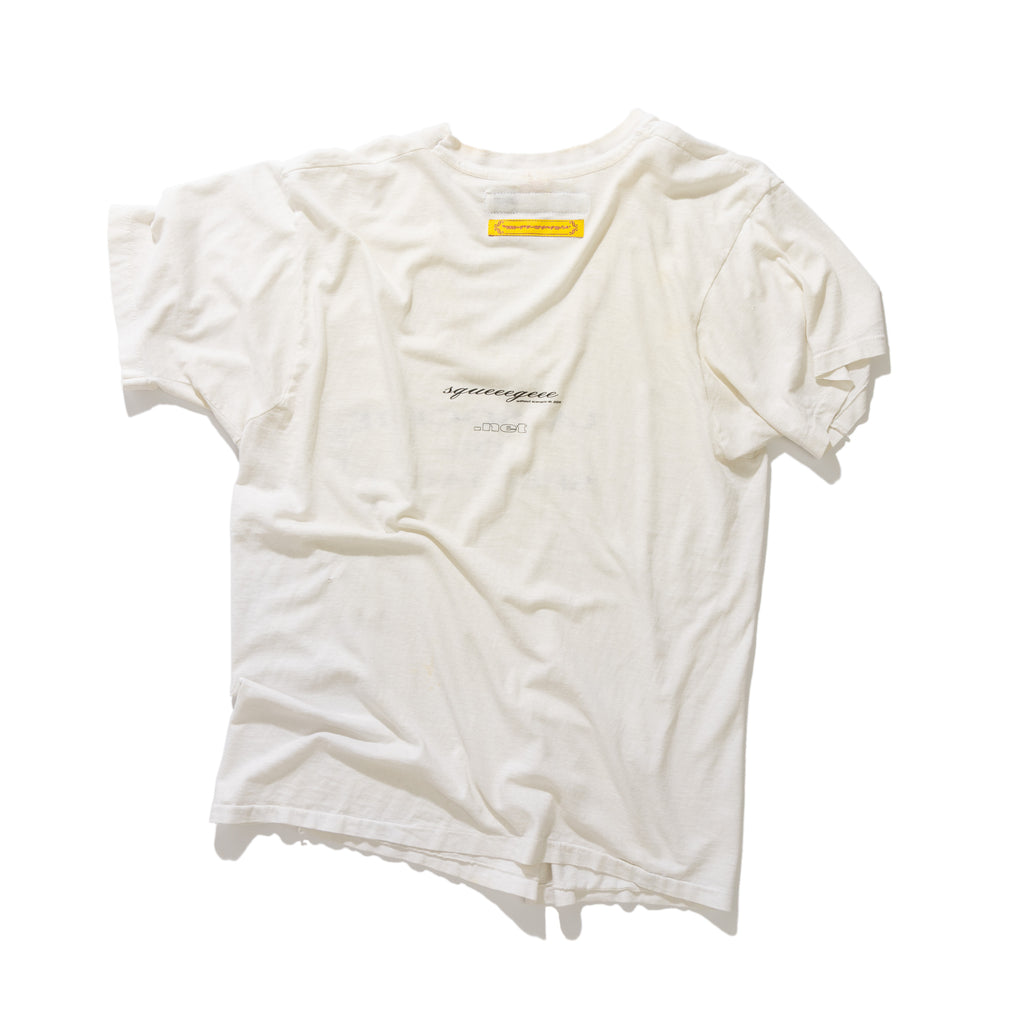 squeeegeee presents the squeee neck. The v-neck t-shirt. An often overlooked and underestimated garment. The squeee neck conveys a sense of buoyancy and leisure. All shirts have a past life: yellowing, stains, warping, cracking and fraying simply make the product richer. The style is so casual it seems enlightened. Carefully careless. Hand-printed in Los Angeles with feelings, mistakes and emotions. Each one is unique.