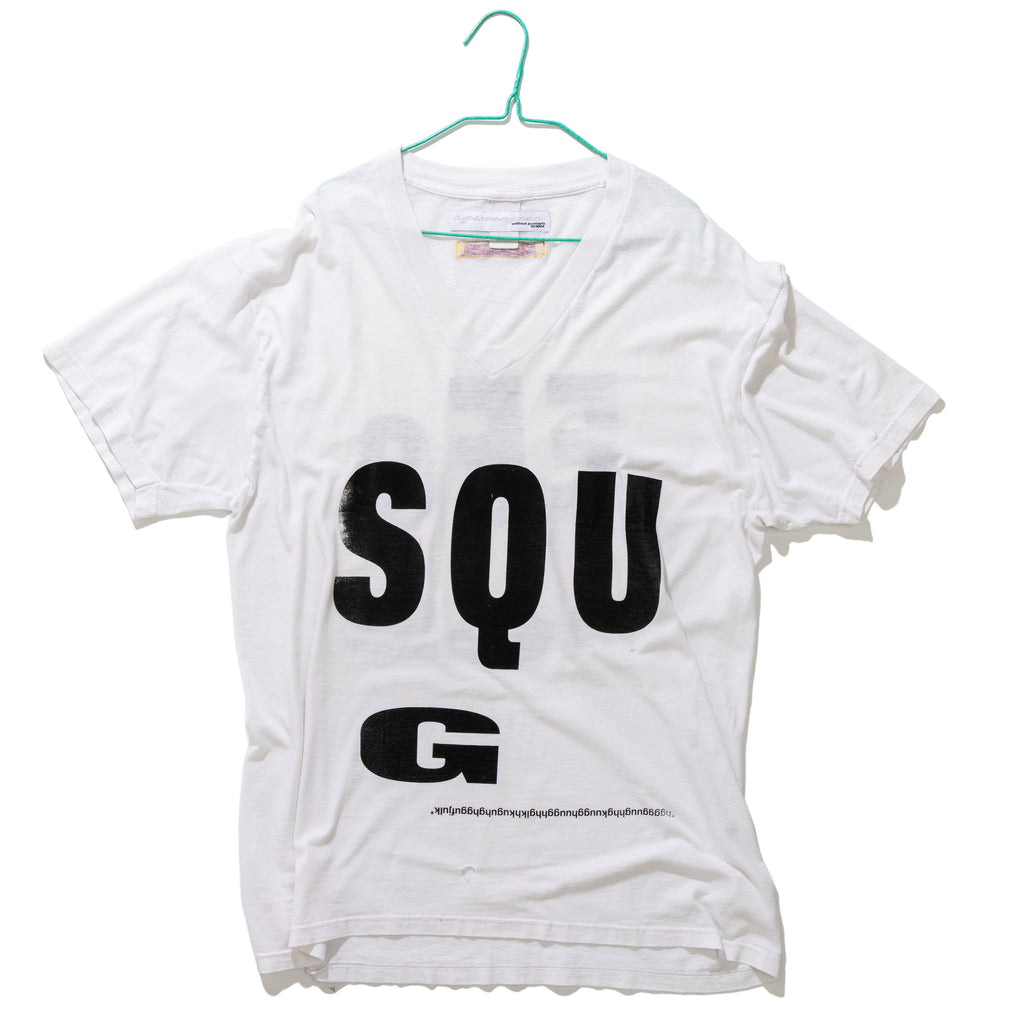 squeeegeee presents the squeee neck. The v-neck t-shirt. An often overlooked and underestimated garment. The squeee neck conveys a sense of buoyancy and leisure. All shirts have a past life: yellowing, stains, warping, cracking and fraying simply make the product richer. The style is so casual it seems enlightened. Carefully careless. Hand-printed in Los Angeles with feelings, mistakes and emotions. Each one is unique.